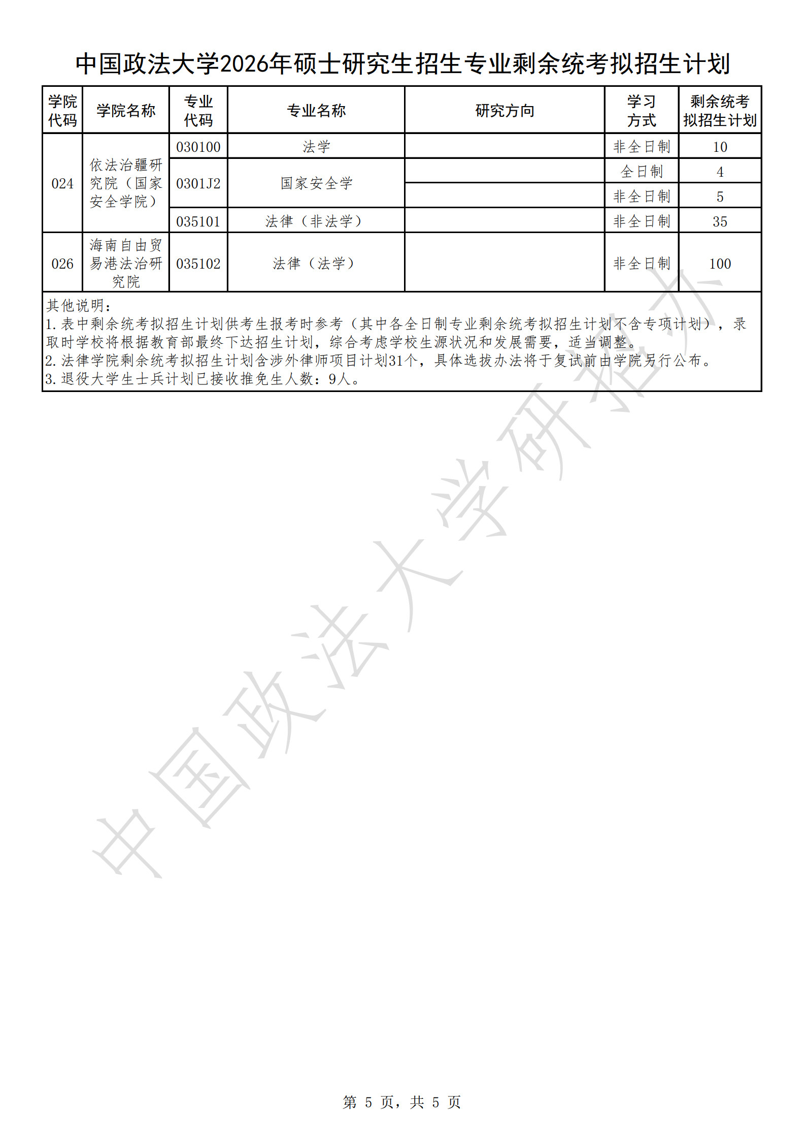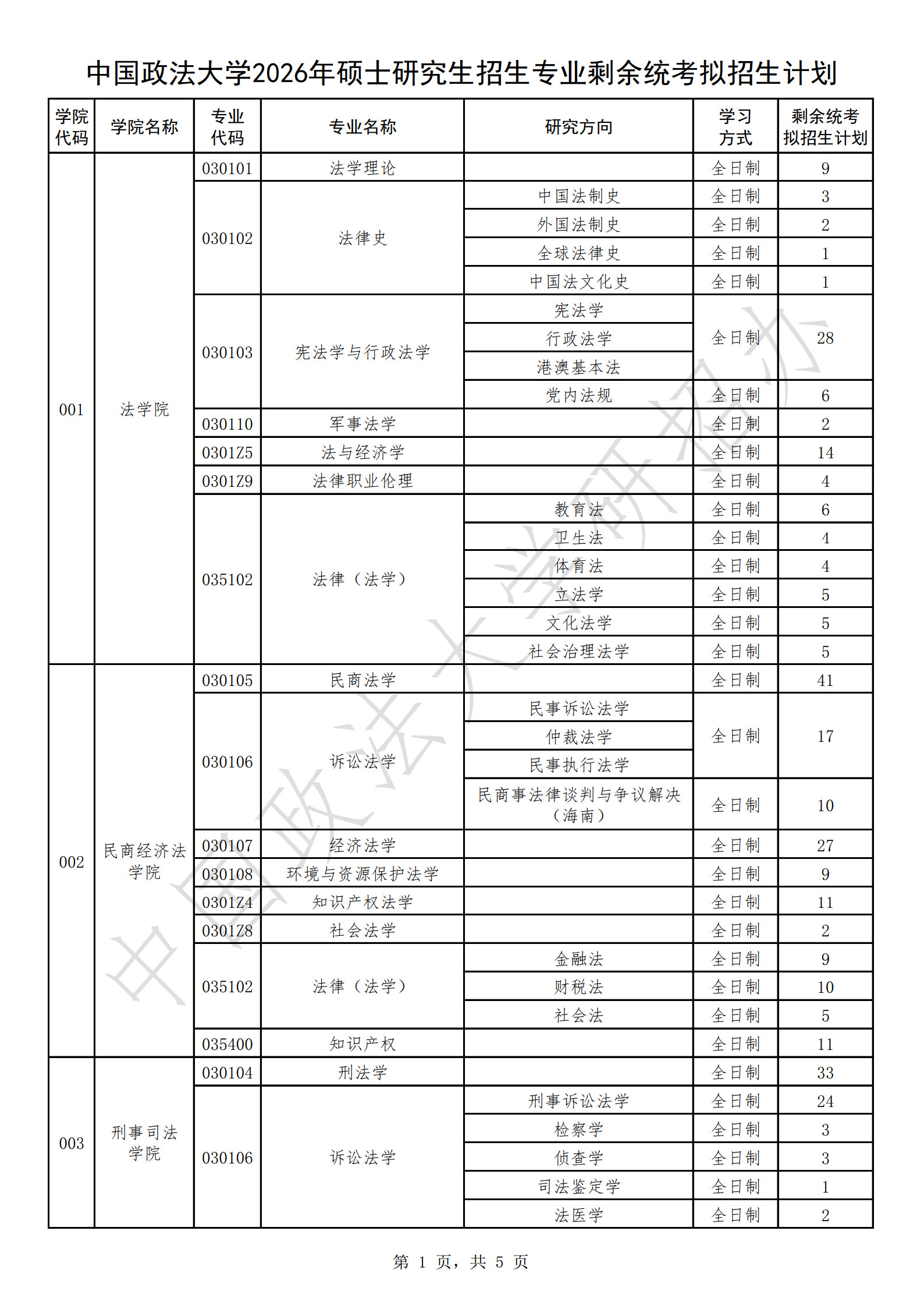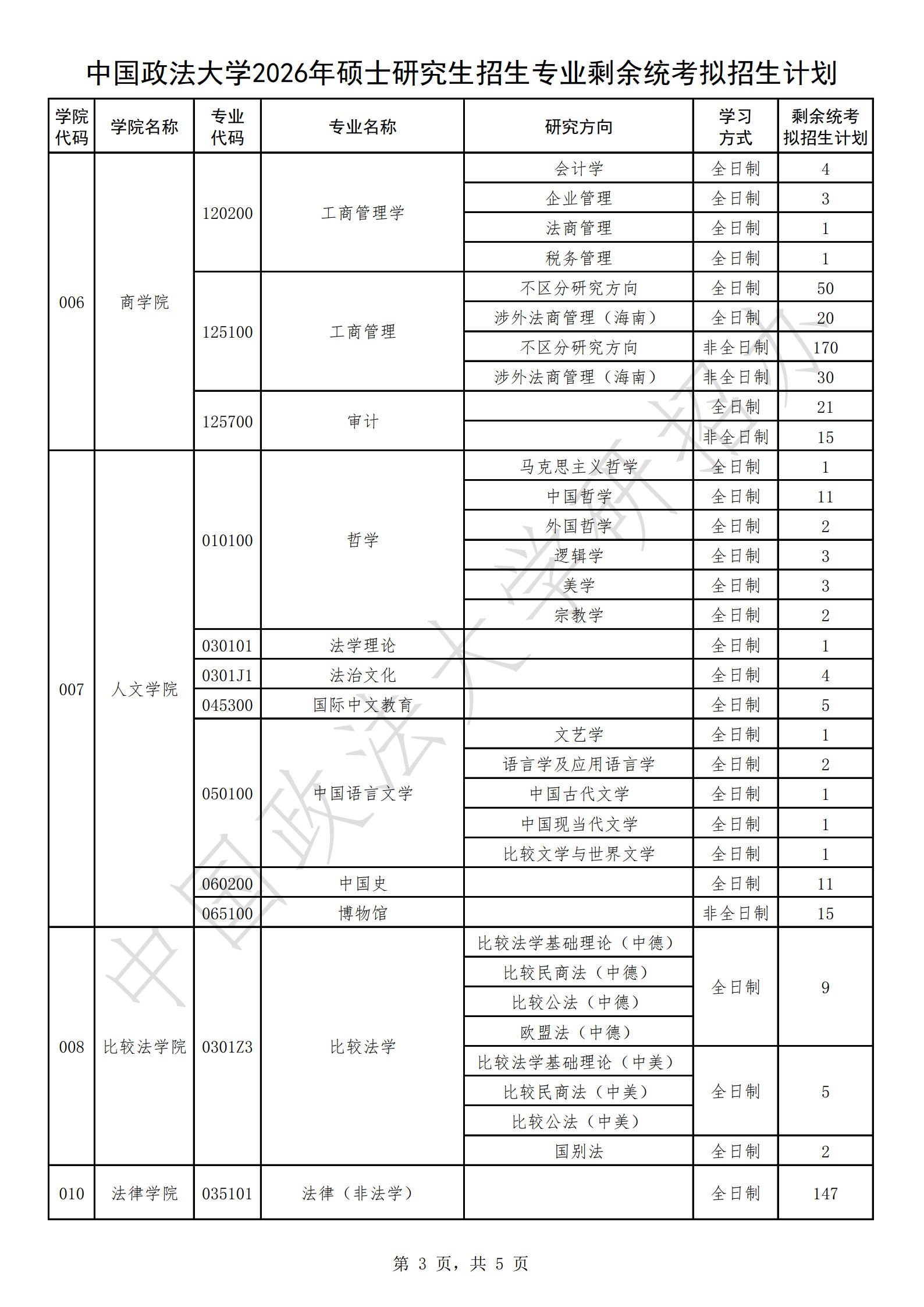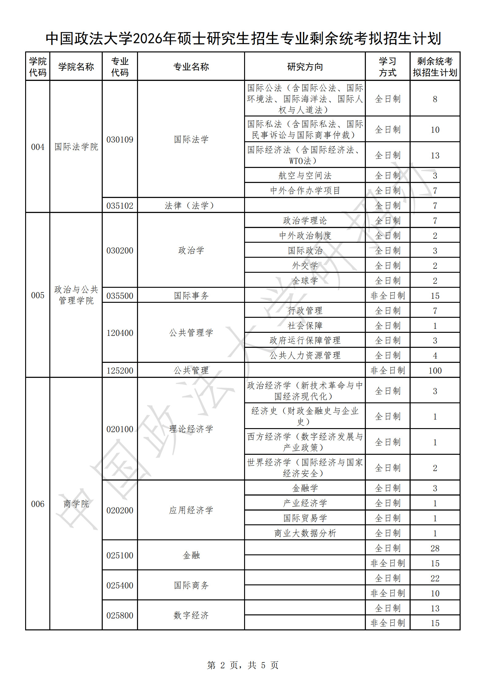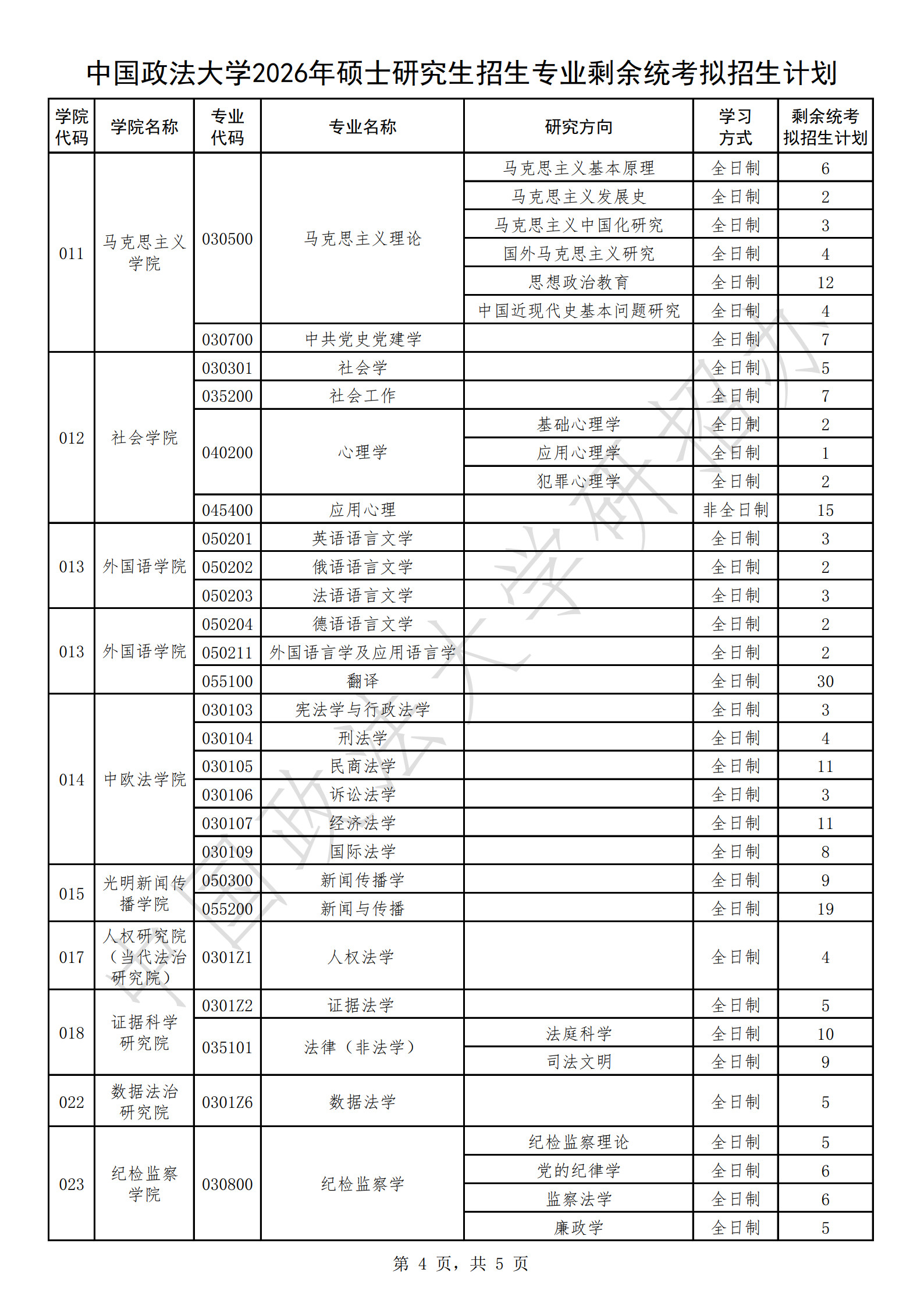 根据我校2026年推免生接收情况,现公布各专业(方向)剩余统考拟招生计划(详见附件),供参加2026年全国硕士研究生招生考试的考生参考。实际招生计划以教育部正式下达的数量为准,录取时我校将以服务国家和社会需求、促进学校各学科良性发展、持续提高生源质量为原则,对各专业招生计划数进行适当调整。
